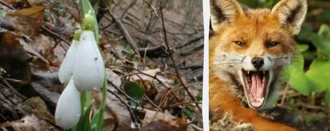 Užduotis yra sudėtinga ir gali tekti priartinti, kad ją atliktumėte. Labai greitai raskite lapę miške / koliažą su nuotraukomis depositphotos.