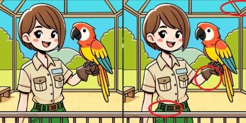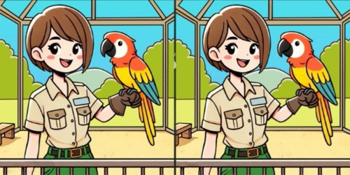 Nuotraukose pavaizduota mergina su papūga. Iš pirmo žvilgsnio nuotraukos atrodo vienodos, tačiau jose slypi trys skirtumai. Jūsų užduotis yra juos aptikti vos per 17 sekundžių.