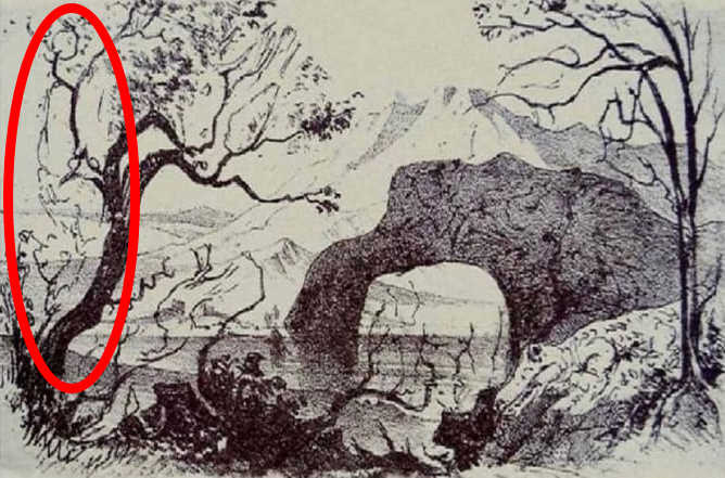 Paslėptą žmogų galima pamatyti kaip kontūrą, atsiremtą į medį paveikslo kairėje. Atrodo, kad jis rūko pypkę.