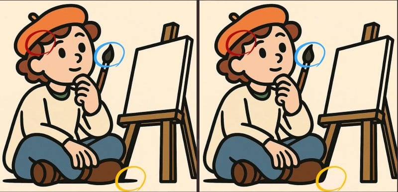 Pasiruošę išbandyti savo stebėjimo galias? Pažiūrėkite į du piešinius, kuriuose menininkas sėdi priešais drobę. Iš pradžių gali atrodyti, kad nuotraukos yra visiškai identiškos, tačiau tarp jų slypi trys nedideli skirtumai.