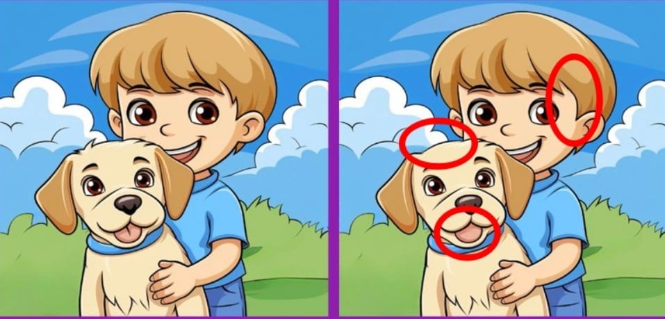 Pasiruošę išbandyti savo dėmesingumą? Pažiūrėkite į du berniuko su šunimi atvaizdus. Iš pirmo žvilgsnio jie atrodo vienodai, tačiau tarp jų slypi trys nedideli skirtumai.