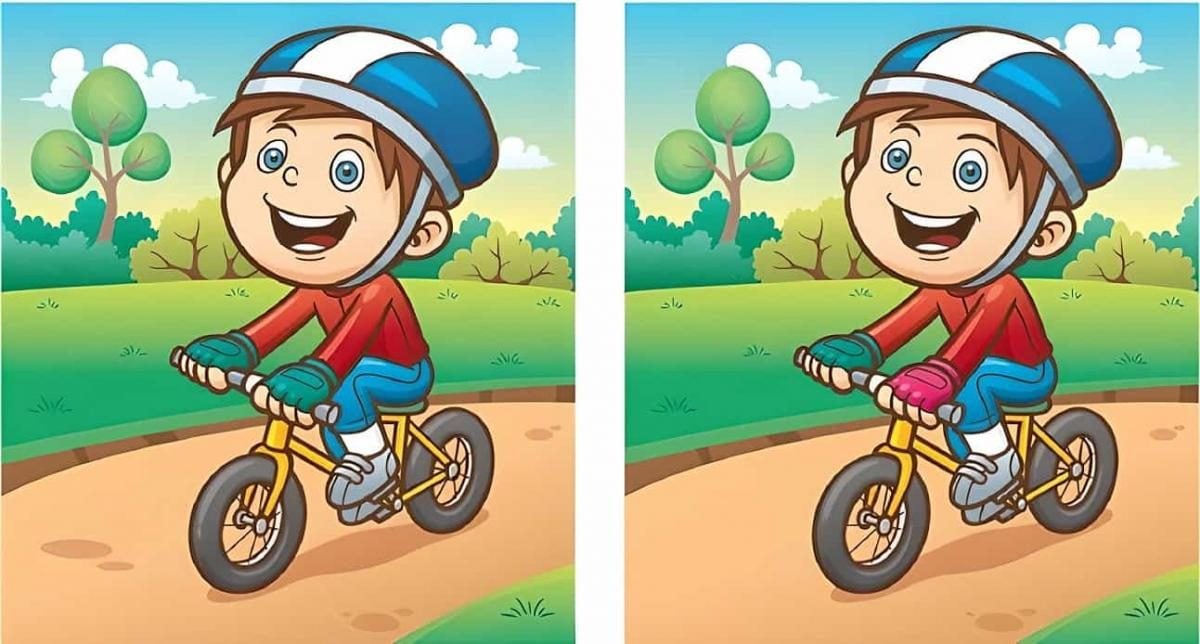 Štai du dviračiu važiuojančio berniuko vaizdai. Jūsų užduotis yra rasti 4 skirtumus vos per 12 sekundžių. Tai nėra taip paprasta, kaip atrodo: skirtumai gali slypėti spalvose, formose ar net smulkiausiose detalėse.