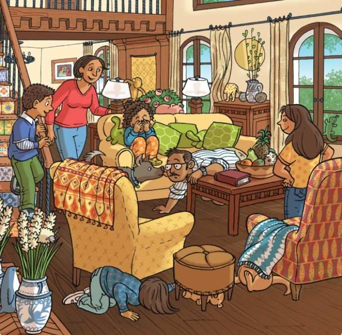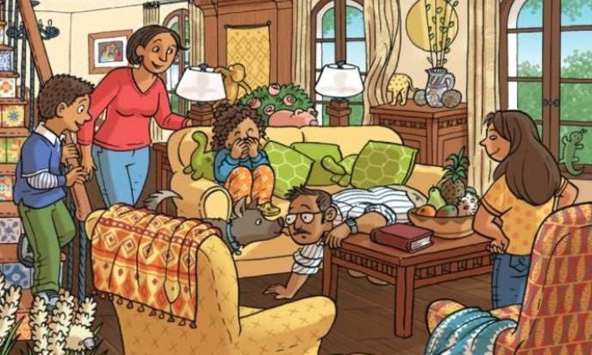 Nuotraukoje matome šeimą, kuri kažką prarado ir dabar bando tai surasti. Pamesti daiktai yra šepetys ir šepetys. Tėtis, mama ir jų vaikai nesėkmingai bando surasti dingusius daiktus, tačiau kol kas nepavyksta. Turime padėti šeimai jų paieškose.