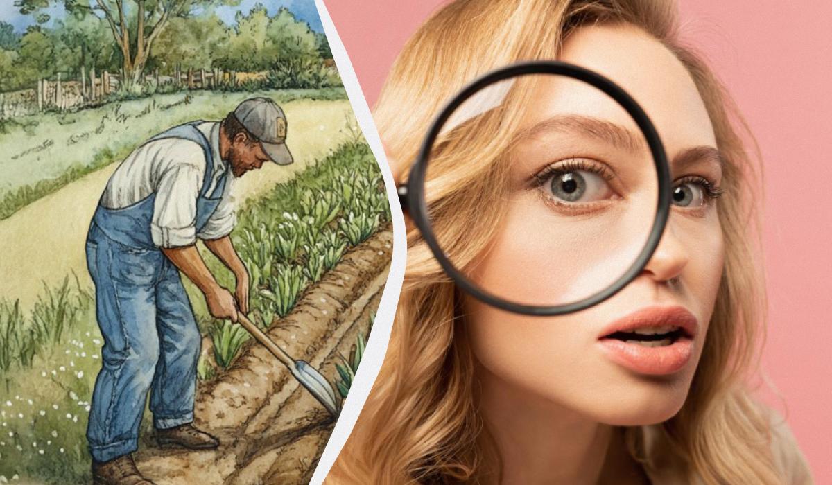 Iš karto pamatysite lauką šalia vaizdingo kaimo ir tris vyrus, dirbančius po atviru dangumi. Turite nustatyti, kas negerai šiame paveikslėlyje.