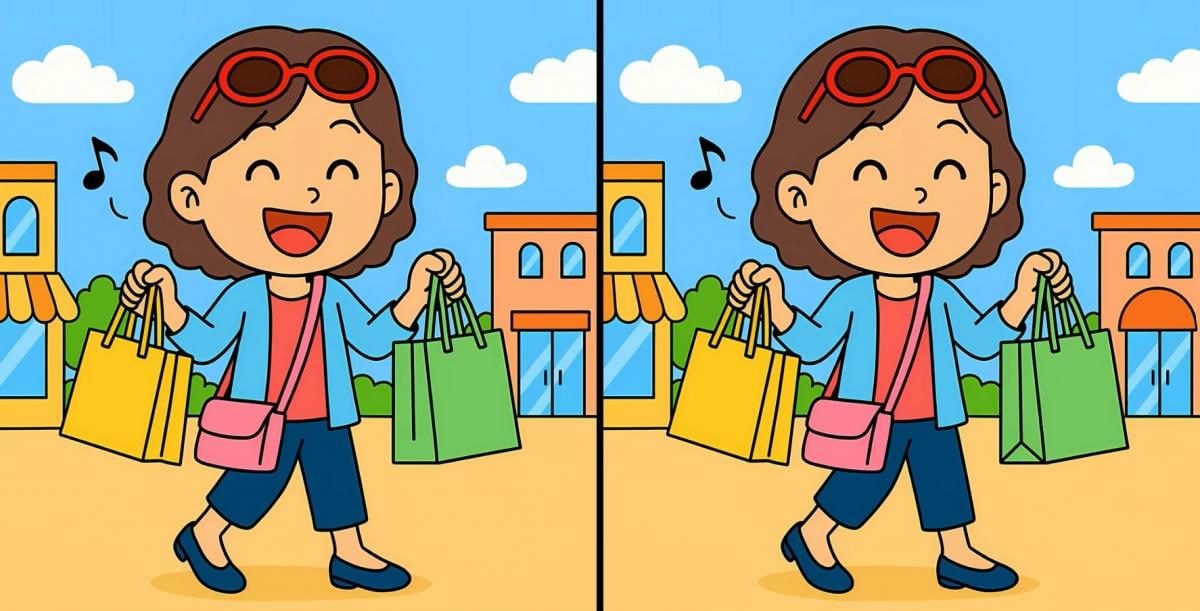 Pasiruošę išbandyti savo dėmesingumą? Čia yra du merginos vaizdai, kurie apsipirkinėja. Jie atrodo identiški, tačiau tai tik optinė apgaulė – tarp jų slypi trys skirtumai.