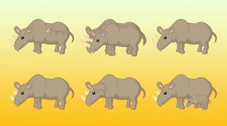 Kitoje mįslėje reikia teisingai suskaičiuoti raganosių skaičių paveikslėlyje, rašo jagranjosh. Tai padaryti nebus lengva, nes paveikslėlyje yra tokių „spąstų“, apie kuriuos dauguma žmonių net neatspės iš karto.