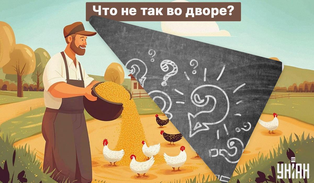 Šiame paveikslėlyje – jaukus kaimo kiemas su vištomis, kurias šeimininkas šeria pasirinktais grūdais. Paveikslas atrodo idiliškai, tačiau jame padaryta viena labai rimta klaida. Padalinkite vaizdą į dalis ir, norėdami rasti atsakymą, pasitelkite gerą mąstymą, nepaprastą vaizduotę ir sveiką protą. Ir atminkite, kad turite ne daugiau kaip 5 sekundes.