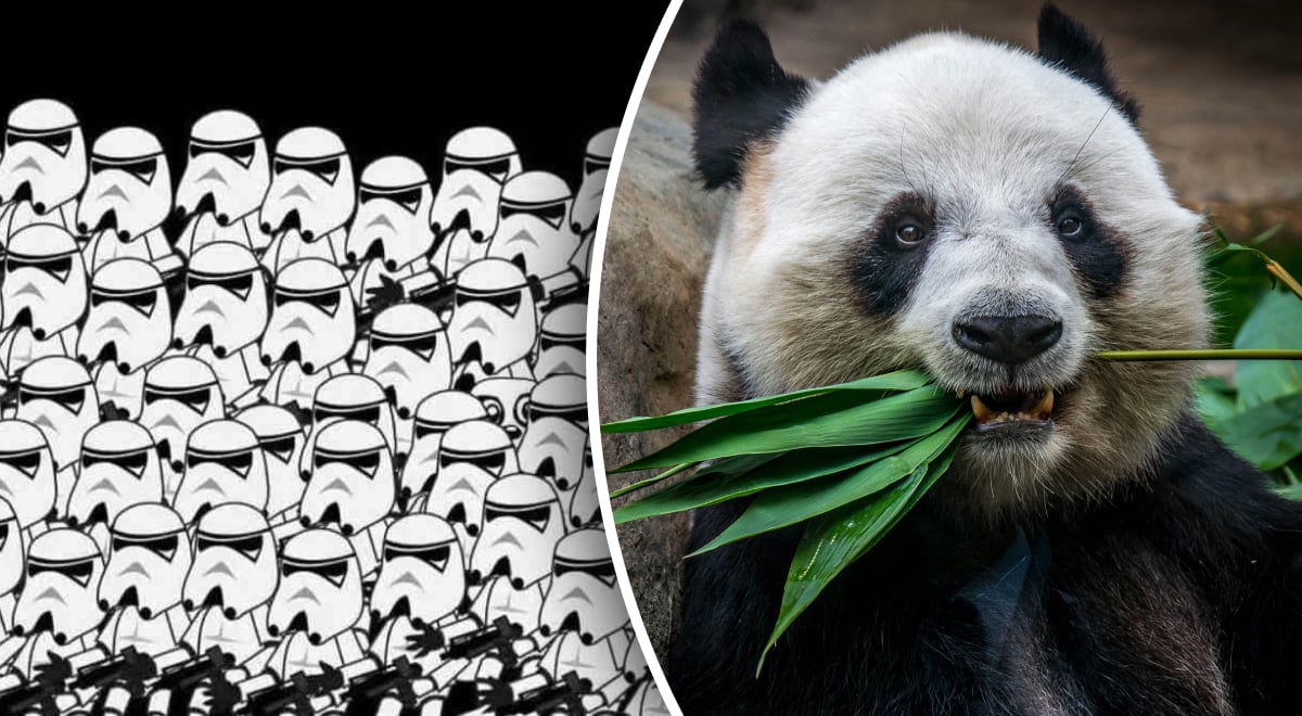 Pandą reikia rasti per 5 sekundes / koliažas: vyriausiasis redaktorius, nuotrauka: jagranjosh, unsplash.com