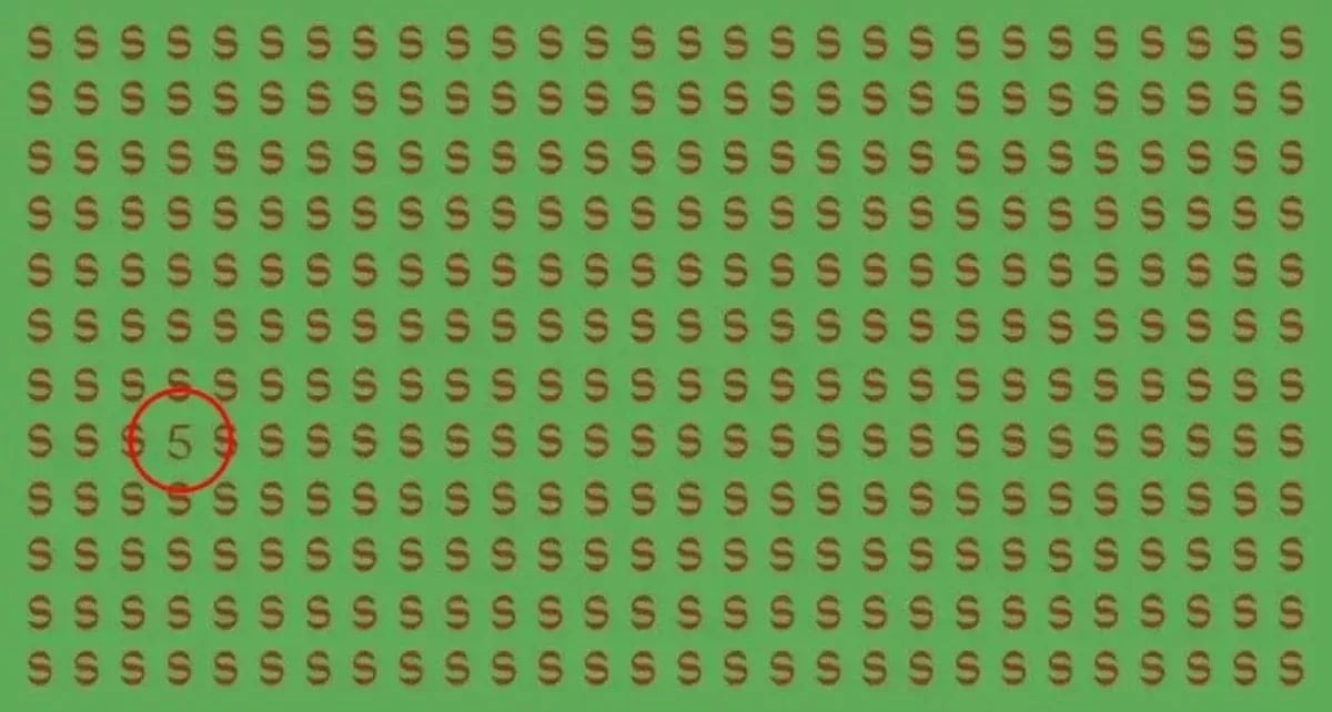Žvelgiant į vaizdą atrodo, kad raudona „S“ užpildo visą stačiakampį langelį, tačiau kai kurie keistą skaičių pastebės per kelias sekundes.