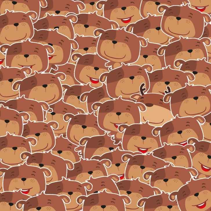 Ar turite aštrų regėjimą? Viršuje esančiame paveikslėlyje pavaizduota besilinksminančių lokių grupė. Kažkaip tarp jų įslinko elnias. Skaitytojų iššūkis – per 4 sekundes surasti elnią.