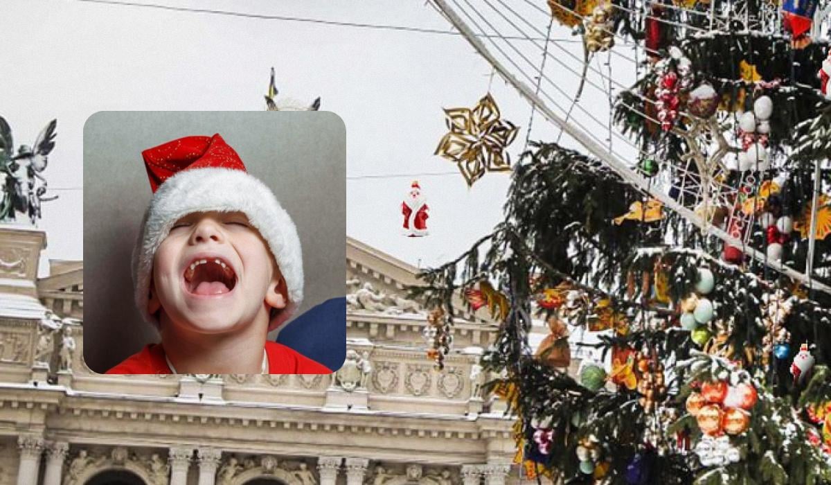 Žemiau – didingos eglutės, papuoštos įvairiais žaislais, nuotrauka. Fotografo objektyve buvo girliandos, dekoras saldainių ir žvaigždžių pavidalu, taip pat 11 mažų Kalėdų Senelių figūrėlių.