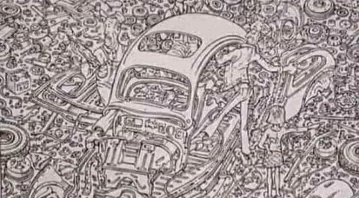Pabandykite išspręsti įdomią, bet labai painią optinę iliuziją – tarp daugybės garaže esančių objektų reikia rasti gerai pasislėpusią katę.