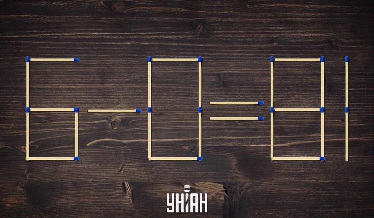 Paveikslėlyje parodytas aritmetinis pavyzdys 6-0=81, išdėstytas degtukais, o tai akivaizdžiai klaidinga. Galite pertvarkyti tik 2 atitikmenis, kad problema atrodytų tinkamai. Norėdami tai padaryti, turite mąstyti už langelio ribų ir turėti gerą matematinę intuiciją.