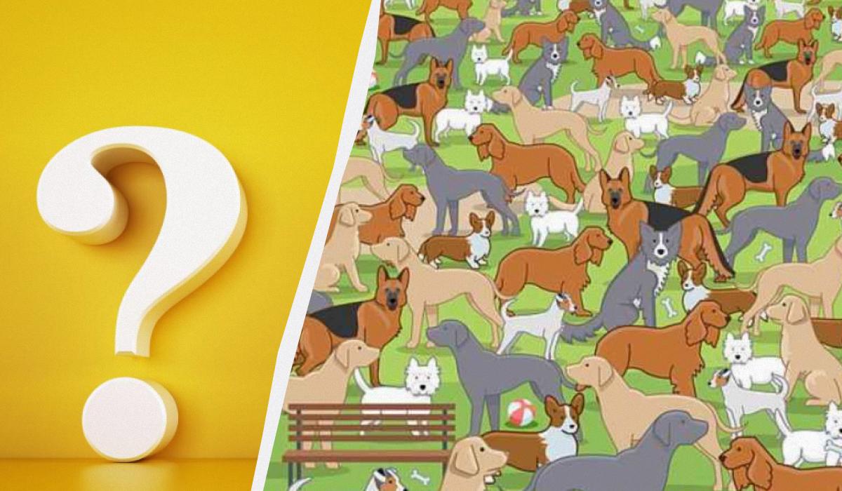 Tik genijus per 11 sekundžių nuotraukoje galės rasti mažą šuniuką, pasislėpusį tarp didelių šunų. Žemiau esančiame paveikslėlyje galite pamatyti žalią parką, pilną terjerų, korgių, labradorų ir spanielių. Kažkur tarp jų buvo pasislėpęs šuniukas.